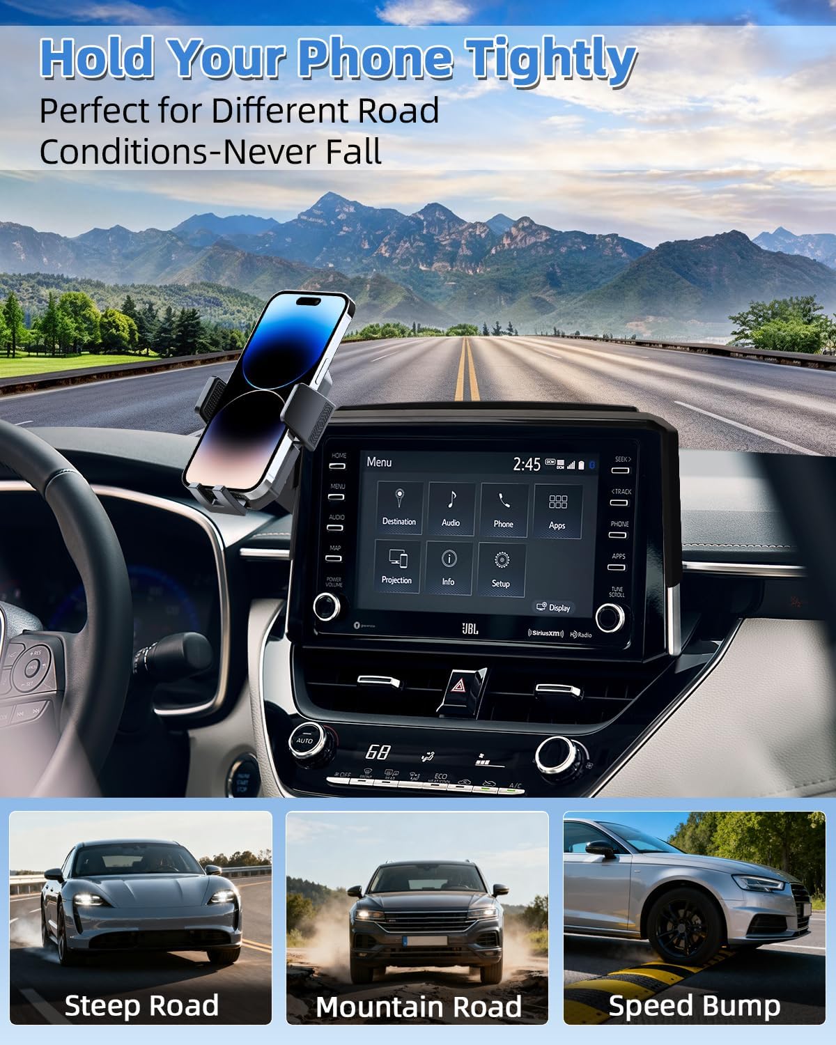 | Additional Features | Quick Release Button, One-Hand Opeation& Releasel, 360° Rotation,Don't Affect Air Vent |